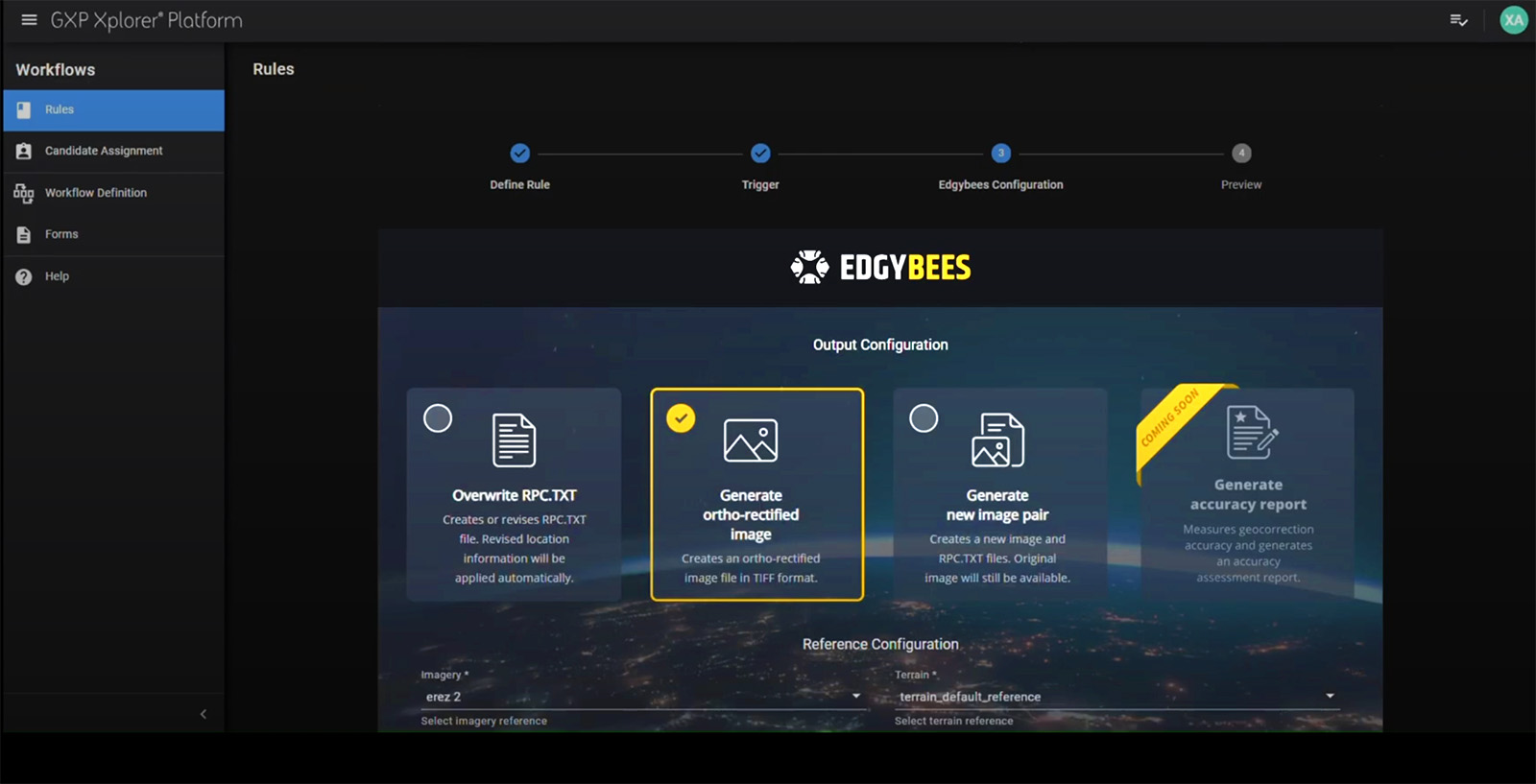 Edgybees Sky and MX are embedded directly in the GXP ecosystem, allowing seamless and automatic correction of all incoming imagery to a single ground truth. The integration of Edgybees software in the GXP ingestion workflows eliminates traditional imagery processing bottlenecks, such as manual correction, proprietary hardware, costly foundation data, and complex deployments.